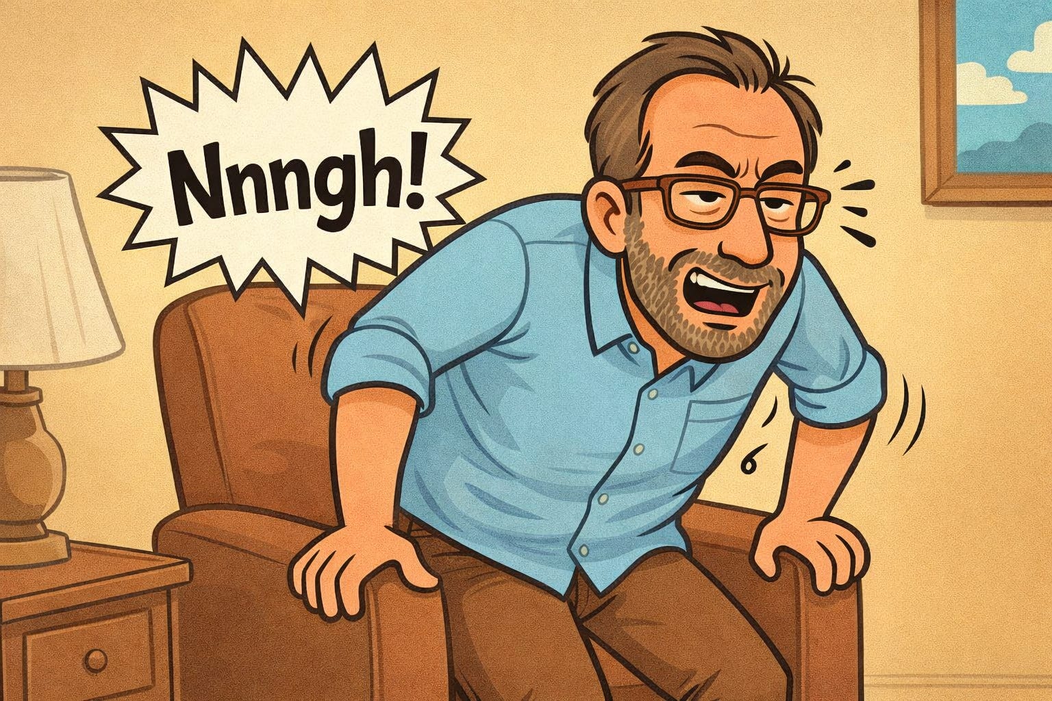 Seriously: I want to not make a grunty sound when I stand up to get another beer, or another bag of Doritos, or another beer AND another bag of Doritos. My goal is to do this silently, ninja-like, with nary a peep.